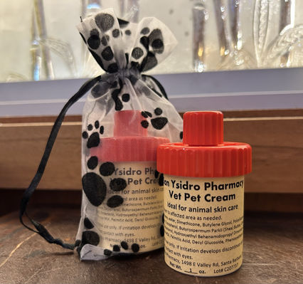 Quality: We use U.S.P. pharmaceutical-grade product. Base creams for transdermal compounds are carefully made just for veterinary purposes. Some base creams are used by themselves to cure dermatological issues and can be bought over the counter at San Ysidro Pharmacy.